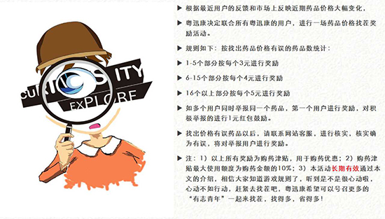 这是一款结合传统游戏和省钱游戏系列的休闲游戏,玩家在游戏中要不惜一切代价价格的不同,努力挣钱从“屌丝”变成“高富帅”或者是“白富美”,找到目标,即可省钱多多。粤迅康大药房推出一款活动哟,大家来找茬啦,