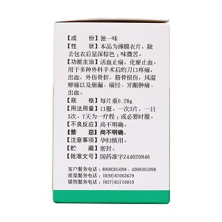 【功能主治】:祛风散寒,活血止痛。用于风寒湿闭阻、瘀血阻络所致的痹病,症见关节疼痛、冷痛、刺痛或疼痛致甚,屈伸不利、局部恶寒、腰腿疼痛、四肢麻木及跌打损伤所致的局部肿痛。