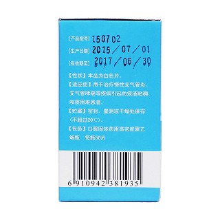 用于治疗慢性支气管炎、支气管哮喘等疾病引起的痰液粘稠、咳痰困难患者。 |