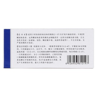 【功能主治】:用于2型糖尿病。单一服用本品,并辅以饮食控制和运动,可控制2型糖尿病患者的血糖。对于饮食控制和运动加服本品或单一抗糖尿病药物,而血糖控制不佳的2型糖尿病患者,本品可与二甲双胍或磺酰脲类药物联合应用。对服用最大推荐剂量二甲双胍或磺酰脲类药物,且血糖控制不佳的患者,本品不可替代原抗糖尿病药物,则需在其基础上联合应用。饮食控制是2型糖尿病治疗的措施之一。限制热量、减轻体重和增加运动均有助于提高胰岛素的敏感性,因而其不仅是2型糖尿病的基本治疗,而且对有效地保持药物疗效有重要的作用。在开始服用本品前,应控制影响血糖控制的病症,如感染。