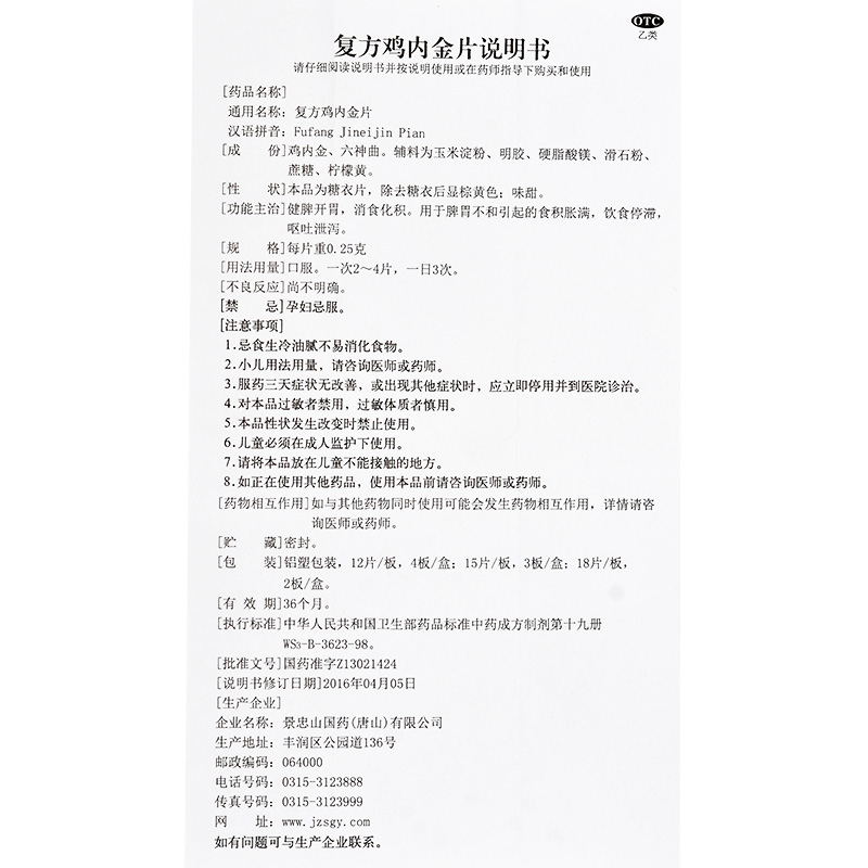| 药名品牌 | 复方鸡内金片(景忠山) |