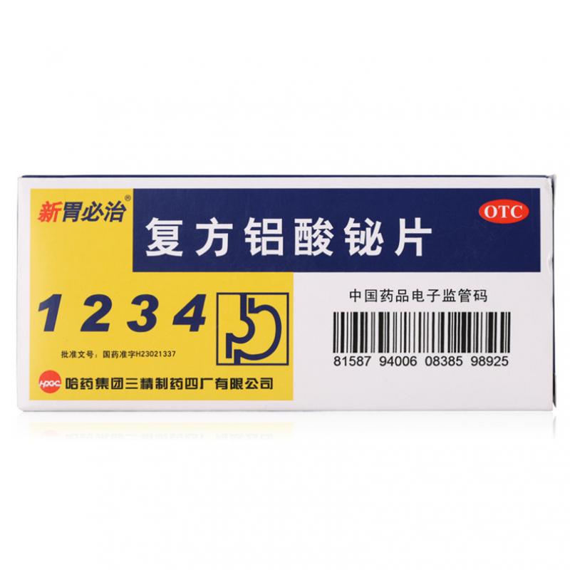 本品为复方制剂,含铝酸铋200毫克、重质碳酸镁400毫克,碳酸氢钠200毫克、甘草浸膏粉300毫克、弗朗鼠李皮25毫克、茴香粉10毫克。辅料为:淀粉、糊精、滑石粉、硬酯酸镁。 |
