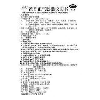 | 成分原料 | 广藿香、紫苏叶,白芷、白术(炒)、陈皮,法半夏、厚朴(姜制)、茯苓、桔梗,甘草,大腹皮、大枣,生姜。 |