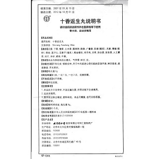十香返生丸(同仁堂)说明书