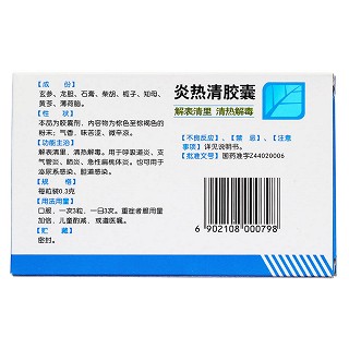 | 药名品牌 | 炎热清胶囊(白云山潘高寿) |