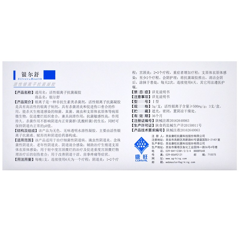 【药品成份】主要由活性银离子抗菌液、赋形剂和阴道给药器构成。