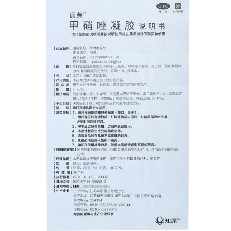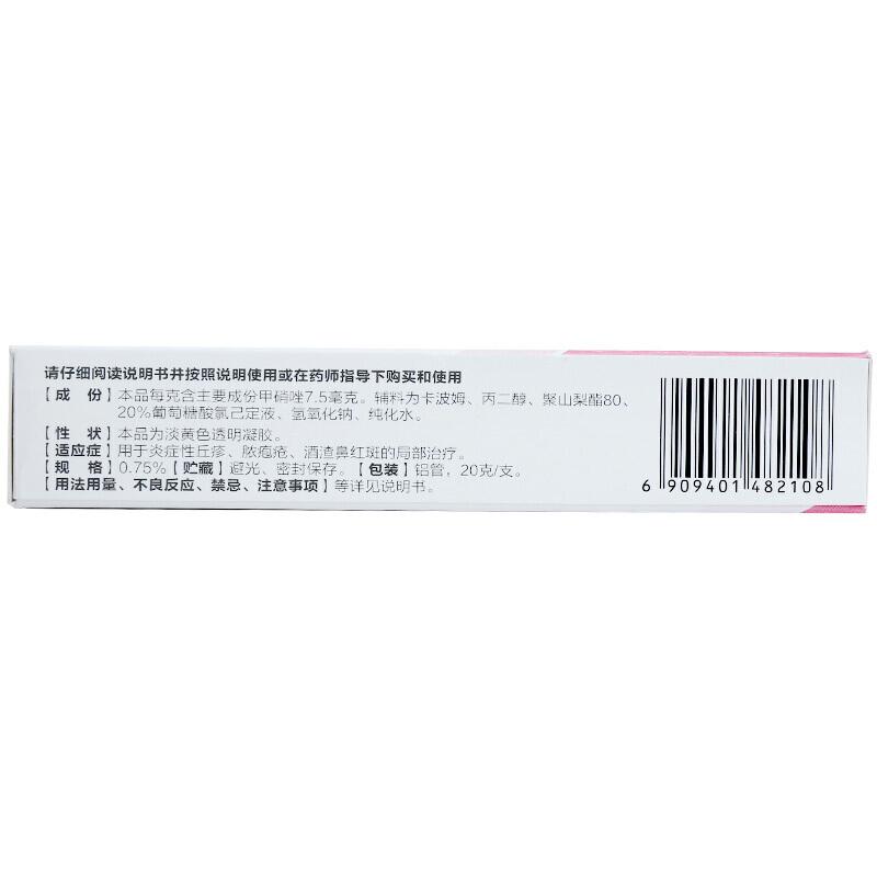 【药品成份】本品每克含主要成份为甲硝唑7.5毫克,辅料为:甘油、edta-2na、羟苯乙酯、吐温-80、卡波姆、三乙醇胺、注射用水。