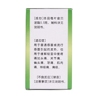 用于普通感冒或流行性感冒引起的发热,也用于缓解轻至中度疼痛如头痛、关节痛、偏头痛、牙痛、肌肉痛、神经痛、痛经。 |