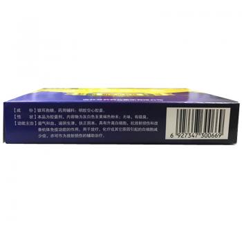 【功能主治】:益气和血,滋阴生津,扶正固本。具有升高白细胞,抗放射损伤和改善机体免疫功能的作用。用于放疗、化疗或其他原因引起的白细胞减少症,亦可作为放射损伤的辅助治疗。